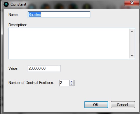 Click on the constant button on the toolbar to create a constant and open its properties: